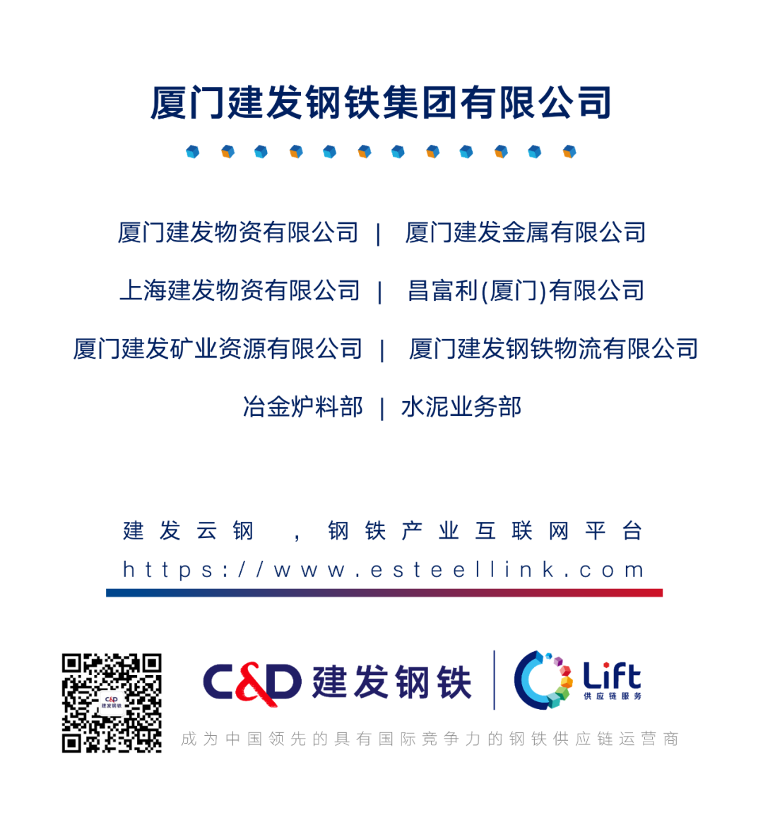 秉持“專業(yè) 共進 生生不息”的品牌理念,建發(fā)鋼鐵集團將持續(xù)深耕鋼鐵產(chǎn)業(yè),以“LIFT”供應(yīng)鏈服務(wù)為核心,在“建發(fā)云鋼”、“鋼鐵物流云”等自主研發(fā)數(shù)字化平臺賦能下,助力鋼鐵產(chǎn)業(yè)伙伴全鏈路的效能提升,致力于成為中國領(lǐng)先的具有國際競爭力的鋼鐵供應(yīng)鏈運營商。
